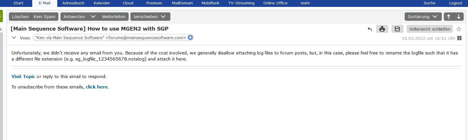 Unfortunately, we didn’t receive any email from you. Because of the cost involved, we generally disallow attaching log files to forum posts, but, in this case, please feel free to rename the logfile such that it has a different file extension (e.g. sg_logfile_1234565678.notalog) and attach it here.